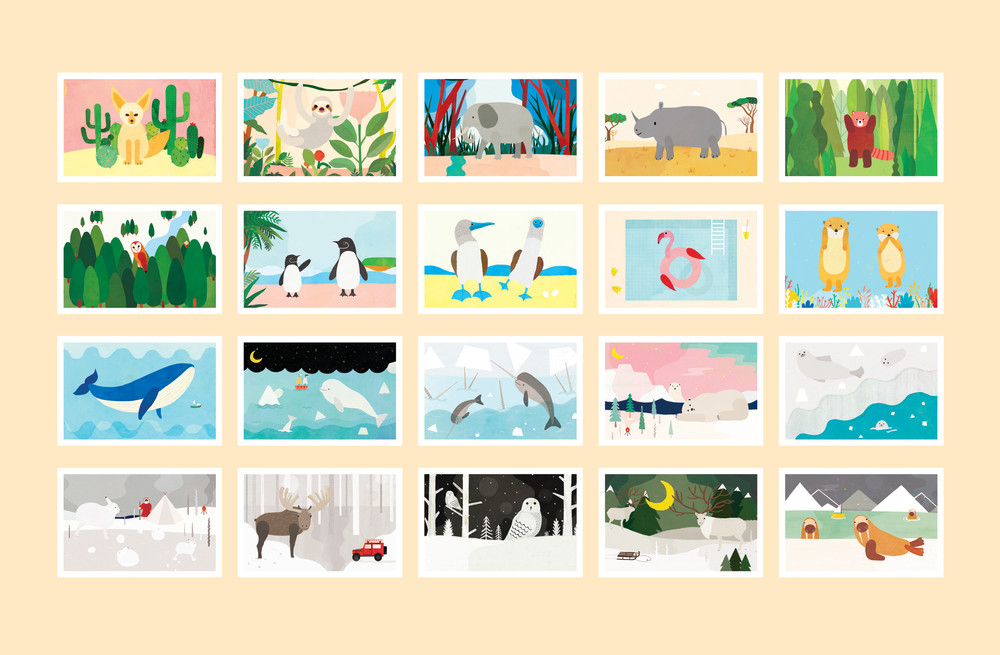 총 20종류의 영화 일러스트 엽서가 담겨있고 뒷면에 영화제목이 있습니다