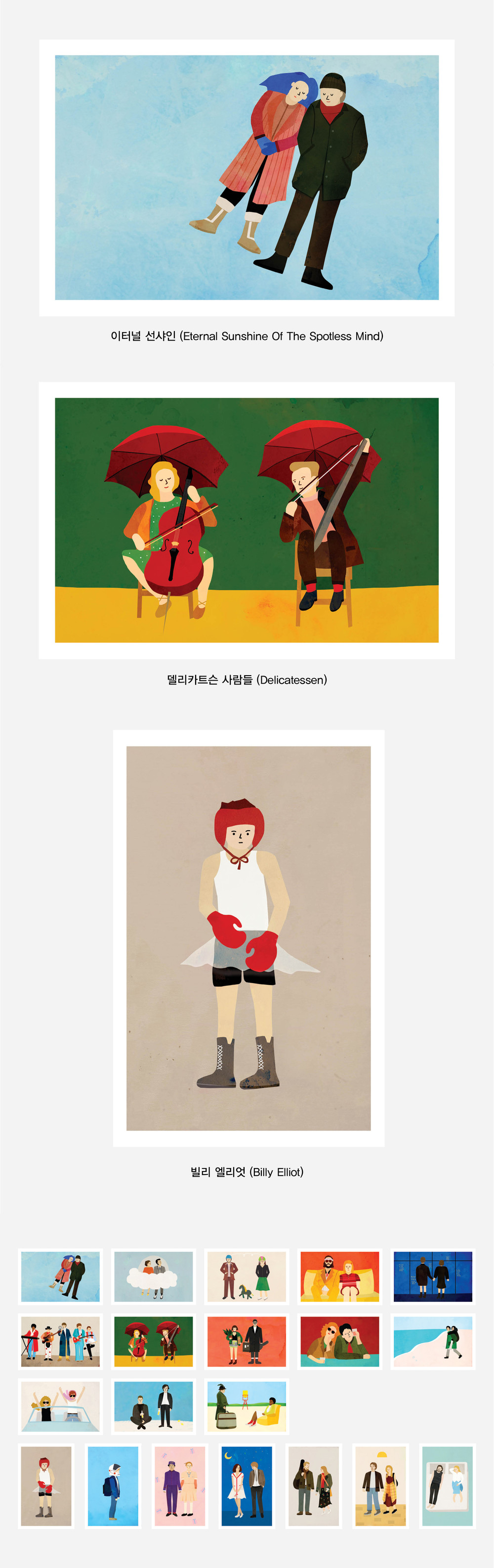 총 20종류의 영화 일러스트 엽서가 담겨있고 뒷면에 영화제목이 있습니다